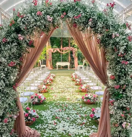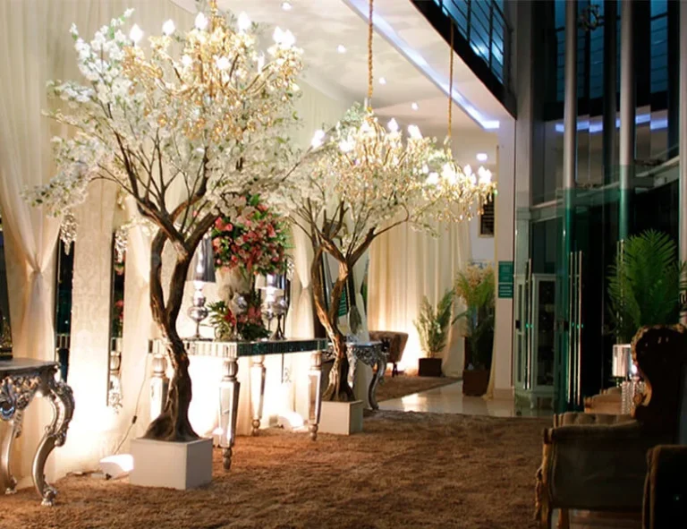Um espaço com extrema elegância e conforto, oferecendo uma escadaria grande e ideal para a entrada dos noivos ou da aniversariante no salão.